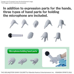 Oltre alle mani combinate con espressioni facciali, sono incluse 3 tipi di mani in grado di tenere un microfono.
