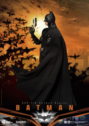"Batman Begins", the opening chapter of Nolan's iconic trilogy, delves deep into Bruce Wayne's psychological journey and moral principles, perfectly capturing Batman's internal struggles and choices. This film successfully transforms Batman from an untouchable "superhero" into a "regular person" with just a few extra abilities. As a result, Bruce Wayne's symbolic meaning resonates with the everyday person, inspiring profound connection and hope. It lays a poignant and impactful foundation for the two sequels that follow, establishing a powerful start to Nolan's Batman epic. The entertainment brand "Beast Kingdom" proudly presents a new addition to its highly detailed and articulated DAH (Dynamic 8ction Heroes) series-DAH-118 Batman (Batman Begins). This figure is crafted with a meticulously sculpted head based on actor Christian Bale's likeness, and it faithfully recreates the first Batsuit, originally designed as military armor in the film. Every detail of this iconic suit is replicated with precision, showcasing its rugged armor and sleek, tech-inspired silhouette. The cape is made from high-quality fabric, and with over 22 points of articulation, players can pose Batman in various dynamic stances. Additionally, the figure comes equipped with Batman's signature weapons and accessories, perfectly capturing the essence of Batman from Batman Begins. product on pre-order with a fixed date (June 2025)