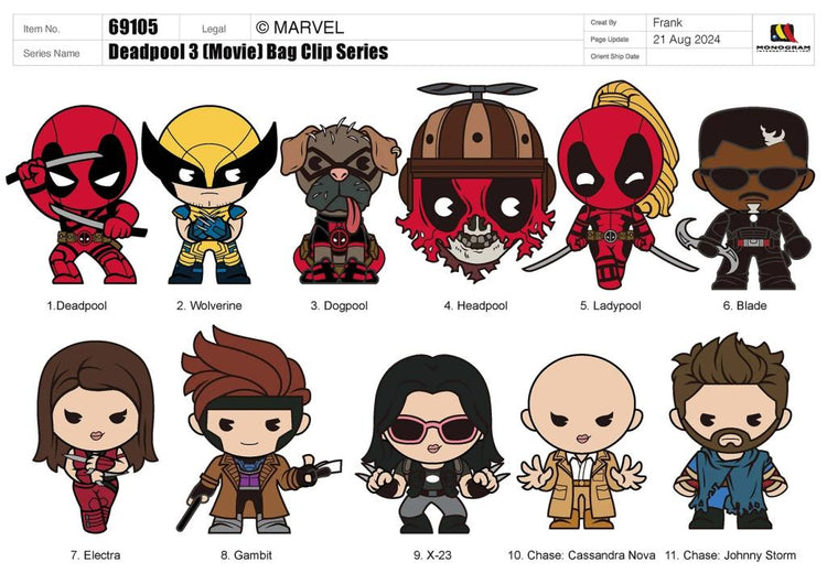 DEADPOOL - Series 1- 3D Foam Bag Clip (Display 24 Pcs)