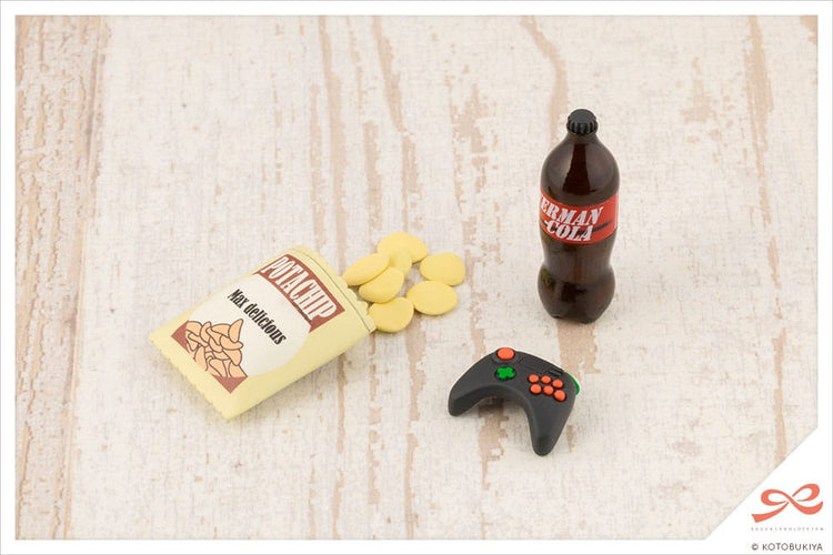 Un ampio set di accessori che include l'angelo e il diavolo che viziano Emma! Il set comprende anche un drago rosso! Angelo e diavolo L'angelo e il diavolo di Emma, che si sono rivelati un successo dopo essere apparsi nella striscia a fumetti di quattro tavole di Ragho, sono stati portati in vita! Le miniature sono state modellate in plastica rossa, color pelle, bianca, nera e nera trasparente. Il set include aste a destra e a sinistra che possono estendere il supporto per Emma, consentendo all'angelo e al diavolo di essere visualizzati come se stessero volando intorno a lei. *Gli occhi e la bocca sono scolpiti ma non dipinti. Parti del viso predipinte Questo kit include facce supplementari per Emma, come quella che fa l'occhiolino e quella che è orgogliosa. Entrambi sono stati ispirati dalla sua linea vocale di esempio, "Hm... Pensavi davvero di potermi battere? Andrà meglio la prossima volta!". Il kit include anche le versioni non dipinte delle parti aggiuntive del viso. Mini-Agnirage AGNIRAGE di HEXA GEAR, il drago rosso preferito di Emma, è stato trasformato in un kit di modellini in miniatura ambientato nel mondo di SOUSAI SHOJO TEIEN! È stato ricreato utilizzando dieci parti in totale e le sue ali e gambe sono articolate. Può essere esposto in posizione di volo utilizzando gli attacchi per la base volante. *La miniatura è disponibile solo in rosso. Patatine e bibite Il set comprende anche un sacchetto aperto di patatine, dieci patatine e una bottiglia di soda. Utilizzare le decalcomanie incluse per decorare il sacchetto aperto e viziare Emma! Controller di gioco Questo kit include anche un controller per console. Articoli inclusi: 1. Parti del viso (preverniciate): Grassetto, occhiolino orgoglioso ×1 ciascuno 2. Parti del viso (non dipinte): Grassetto, Occhiolino fiero ×1 cad. 3. Angelo ×1 4. Diavolo ×1 5. Espositore per angeli ×1 6. Espositore del diavolo ×1 7. Pali di prolunga per espositori: Sinistra/Destra 8. Mini-Agnirage ×1 9. Sacchetto per patatine ×1 10. Patatine ×10 11. Bottiglia di soda ×1 12. Controllore di gioco ×1 13. Decalcomanie per il viso ×1 Foglio